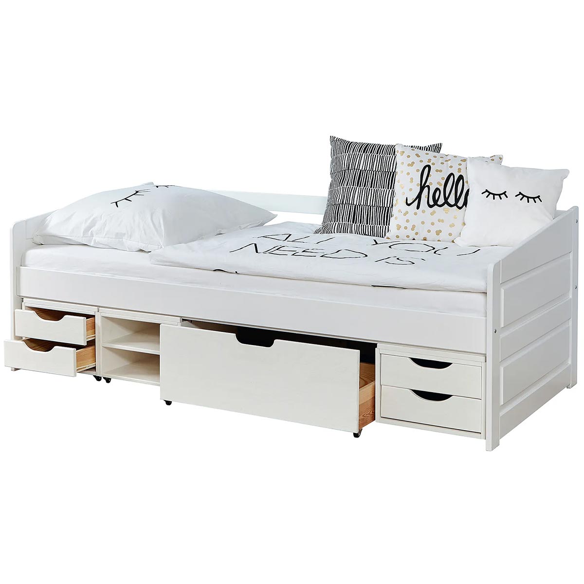 Das Ticaa Sofabett MINI Micki ist aus Buche gefertigt und wird inklusive Matratze und Rollrost geliefert. Die Schubkästen und offenen Fächer bieten viel Platz zum Aufbewahren von Spielzeug und anderen Kleinigkeiten. Auf dem Sofabett lässt es sich wunderbar entspannen und dank der Lehnen ist es auch sehr gemütlich.