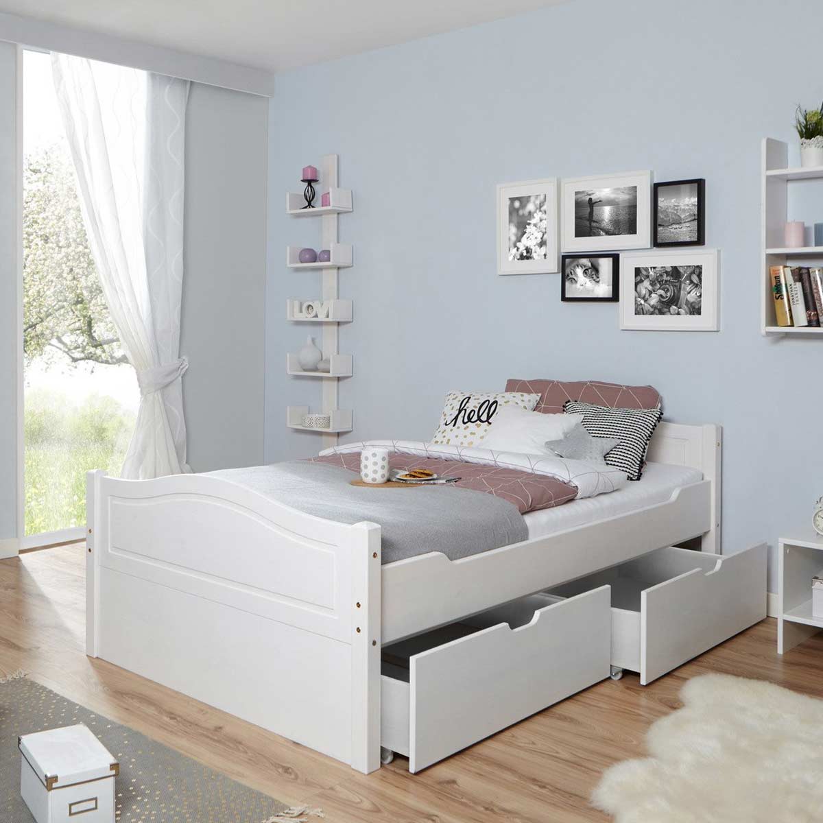 Das Ticaa Einzelbett Leni ist aus massiver Kiefer gefertigt. Die Schubkästen bieten viel Platz zum Aufbewahren von Spielzeug und anderen Kleinigkeiten. Auf dem Sofabett lässt es sich wunderbar entspannen und dank der Lehnen ist es auch sehr gemütlich.
