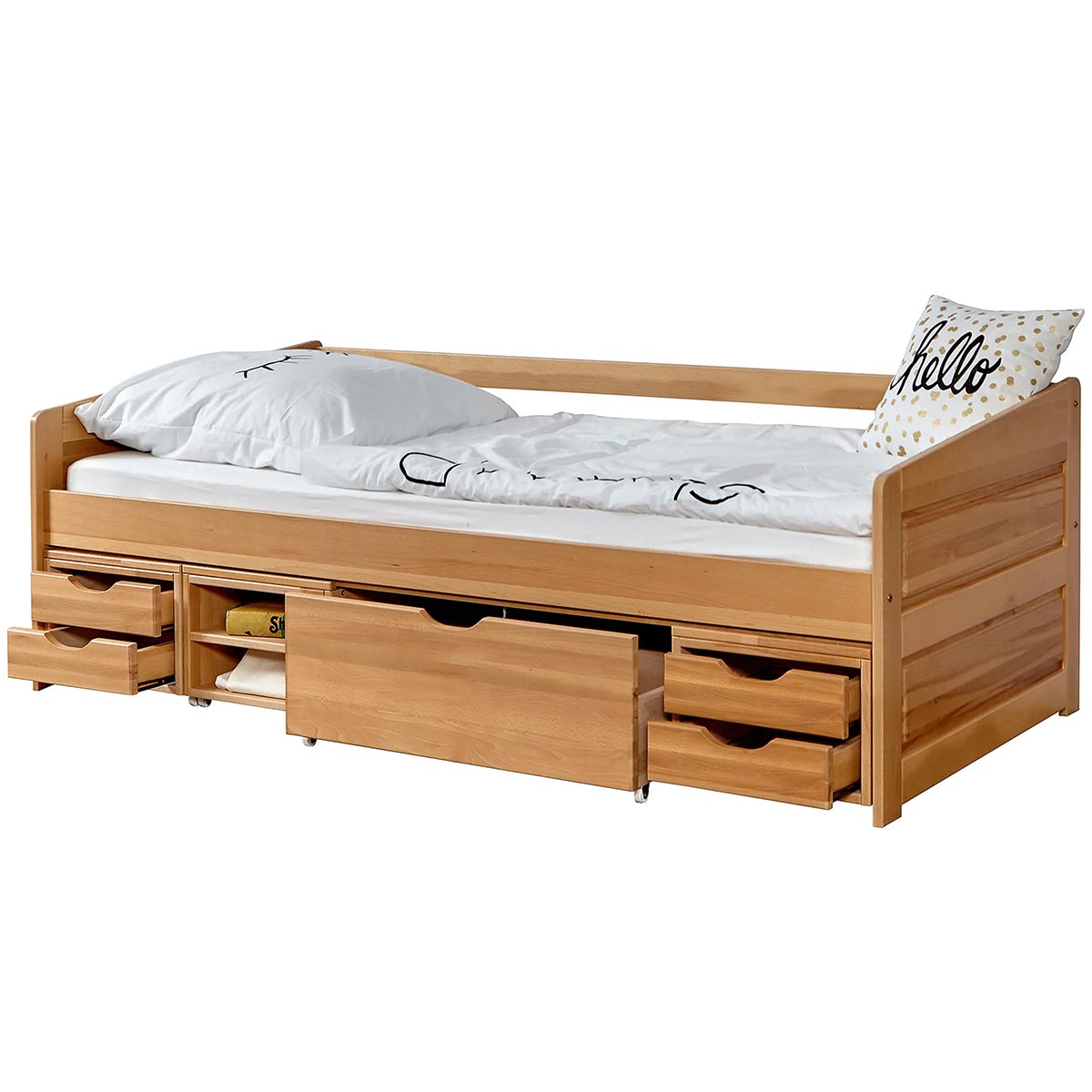 Das Ticaa Sofabett MINI Micki ist aus Buche gefertigt und wird inklusive Matratze und Rollrost geliefert. Die Schubkästen und offenen Fächer bieten viel Platz zum Aufbewahren von Spielzeug und anderen Kleinigkeiten. Auf dem Sofabett lässt es sich wunderbar entspannen und dank der Lehnen ist es auch sehr gemütlich.