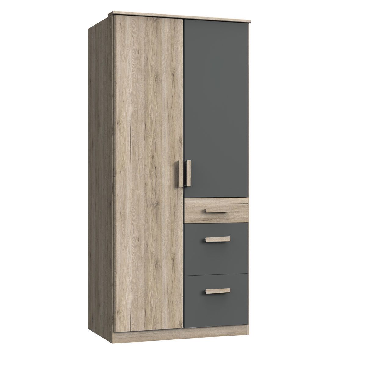 Wimex Cariba Kleiderschrank 2-türig San Remo-Eiche-Nachbildung / Graphit